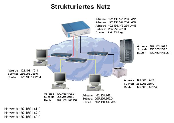 Ein strukturiertes Netz wird ein IP-Netz bezeichnet, das einen Router benötigt, um verschiendene