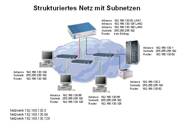Ein strukturiertes Netz mit Subnetzen wird ein IP-Netz bezeichnet, das einen Router benötigt,
