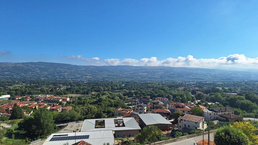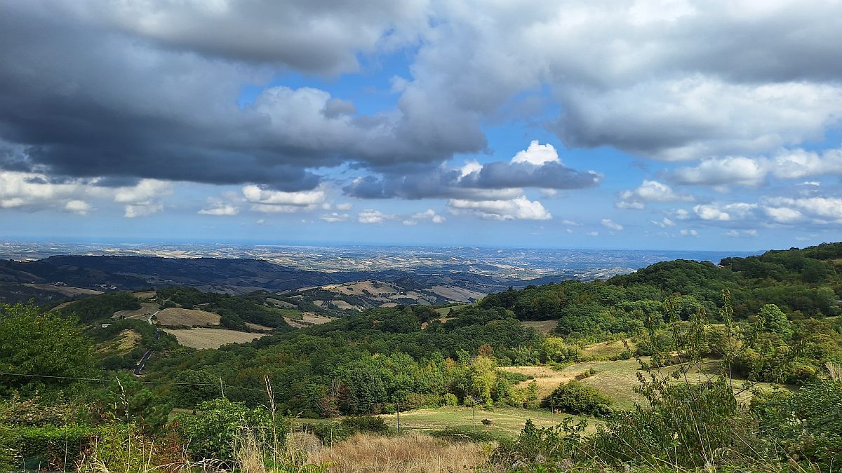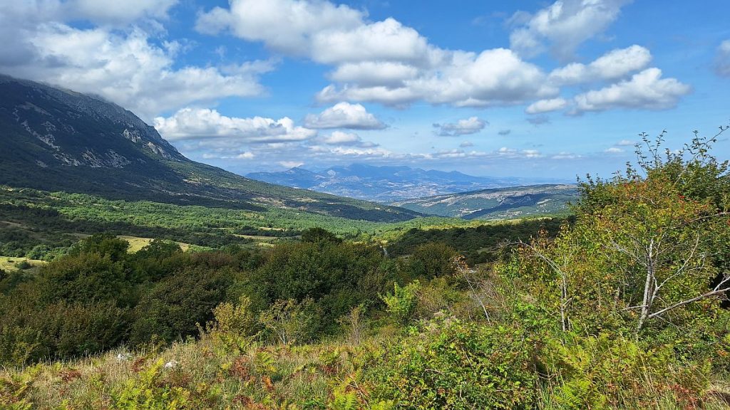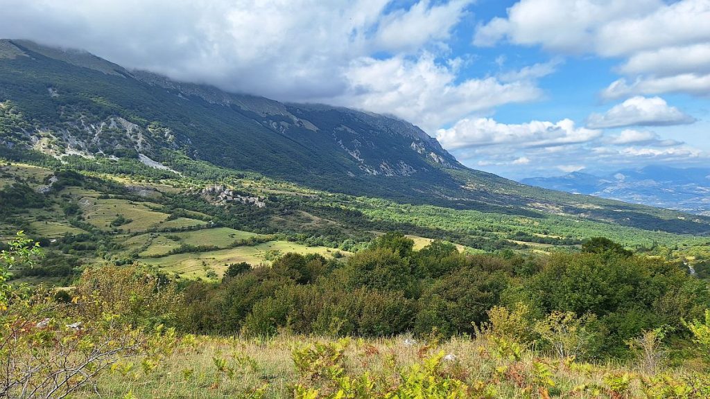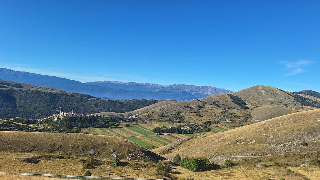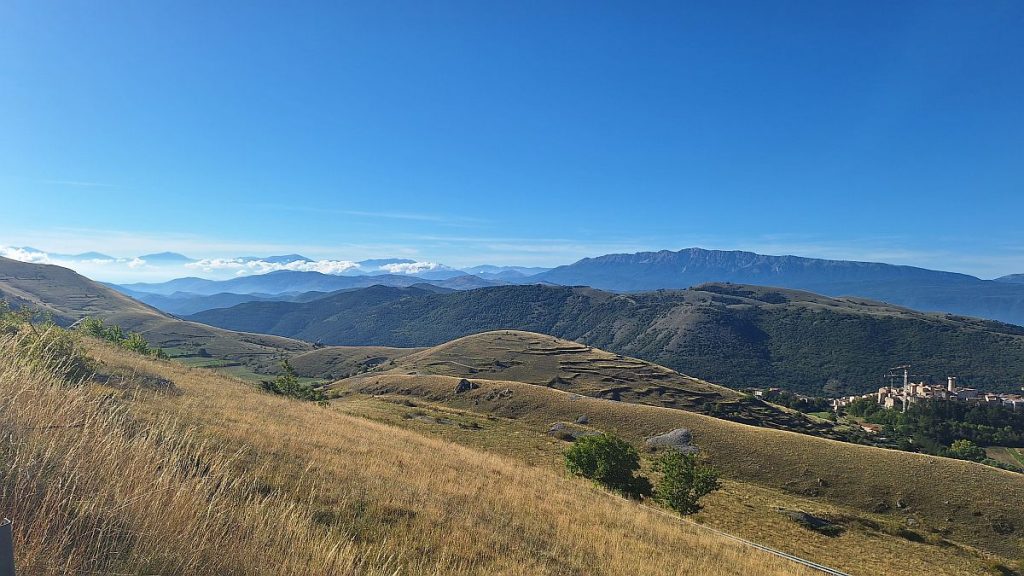 Nächster Ort und kurzer Halt ist Marcone, eine in den Berg verbaute Stadt. Von der Stadt aus kann man die Landschaft, von der wir gekommen sind, schön erkennen.