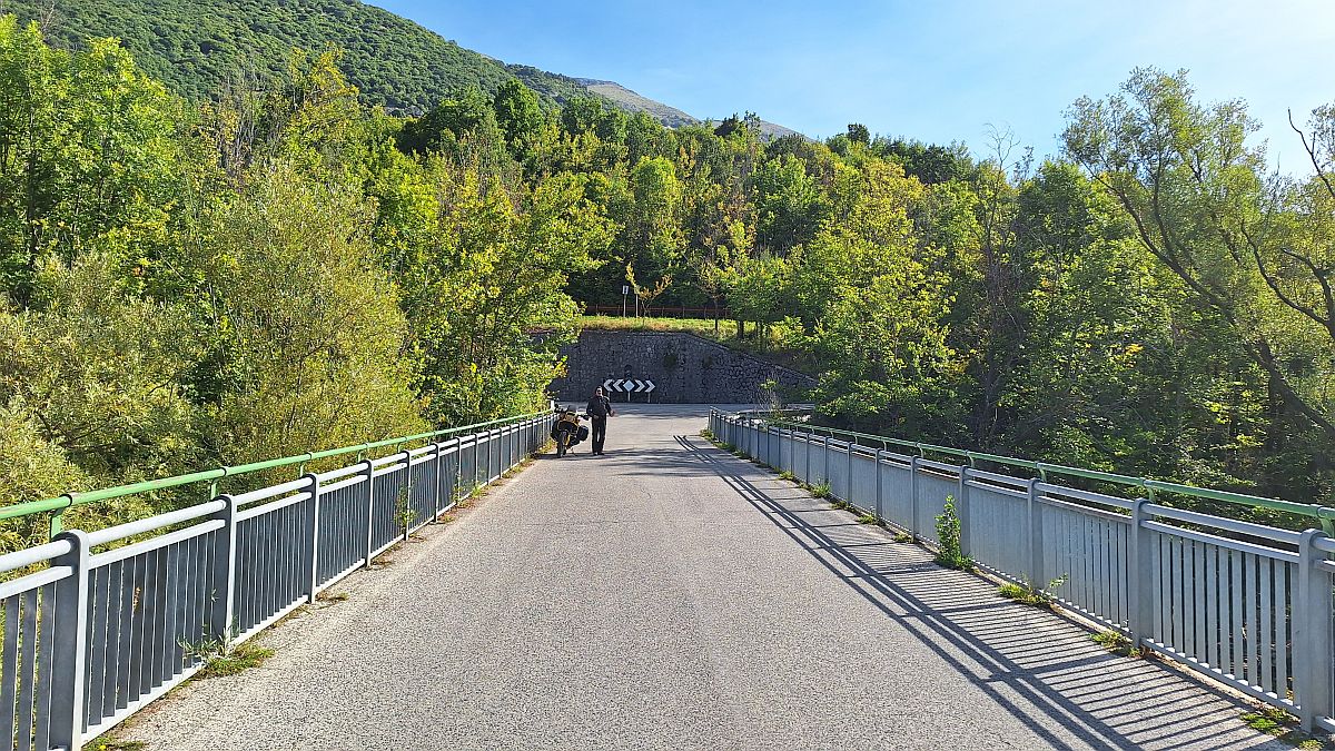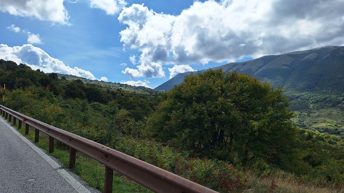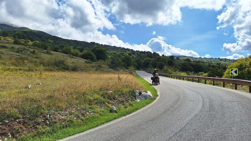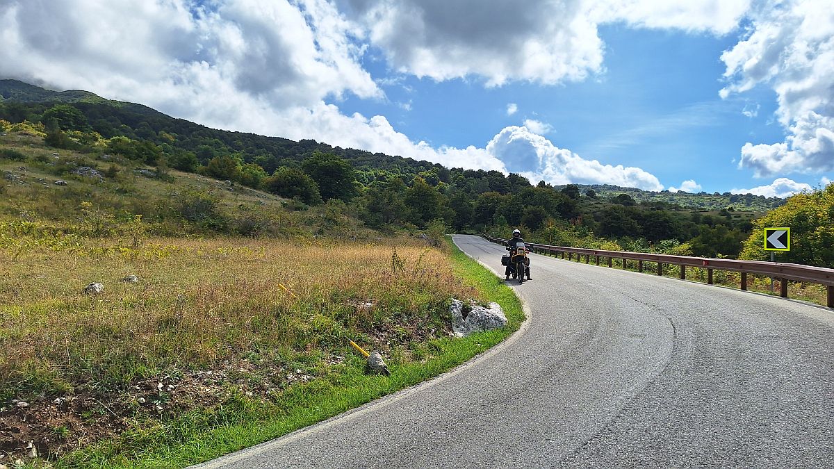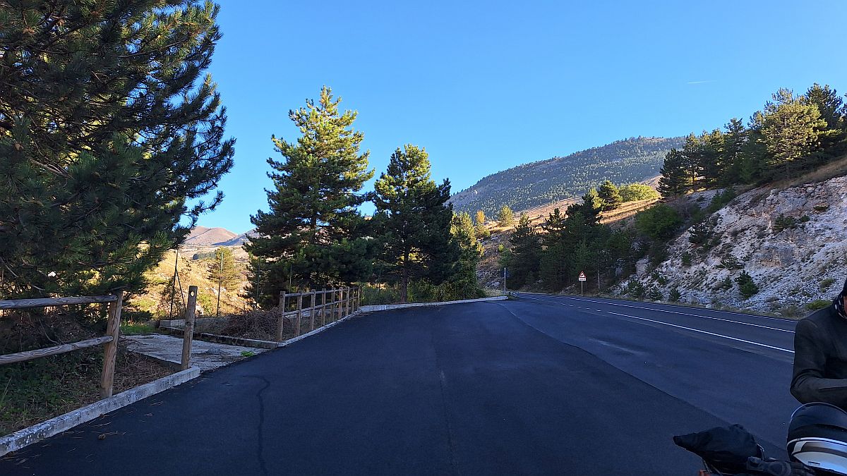 Hinter Gallo Matese ein kurzer Tankstopp, man weiß ja nicht, ob es auf den kleinen Strecken noch weitere Tanken gibt bzw. wenn, ob sie funktionieren. Bis Montaquila hat die Strecke wenig zu bieten, aber dahinter geht es über die SS158 wieder in die Berge. Viele schöne Kurven geht es teilweise durch den Wald, immer wieder sind Serpentinen dabei. Eine kleine kurze Rast zum Entspannen.
