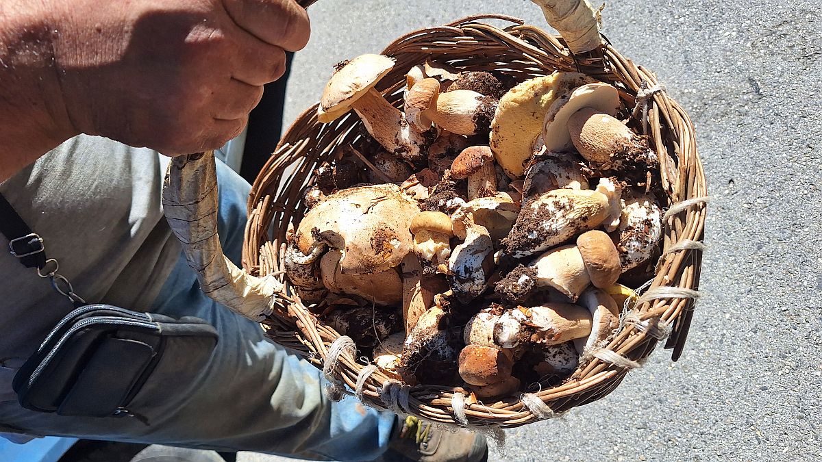 Hier treffen sich die Pilzsammler und tauschen sich aus oder machen eine kurze Pause. Isabella geht auf einen der Sammler zu und fragt ihn, ob sie den vollen Korb ablichten darf. Darf sie, sein ganzer Stolz.