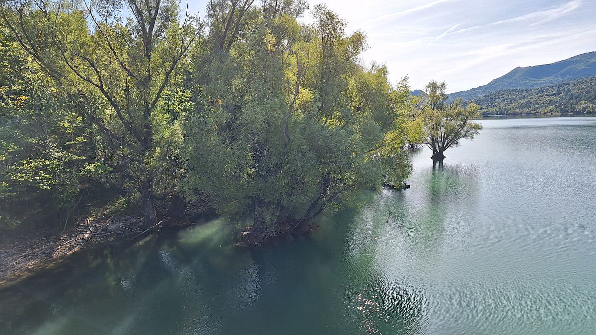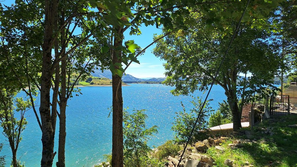 Schnell in den Schatten, die Sonne hat die Landschaft im Griff. Aber der See mit seinem schönen blauen Wasser nimmt einen in den Bann.