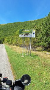 Hinter dem See biegen wir auf die SR479 in Richtung Norden. SR steht vermutlich für Strada Regionale, so fährt sie sich auch. Klein, nicht ganz eben und ab und an mit defektem Asphalt. Aber super schön zum Motorradwandern. Wieder steigt der Weg kräftig an, wir halten nun endlich mal an einem Schild, dass uns schon länger begleitet: