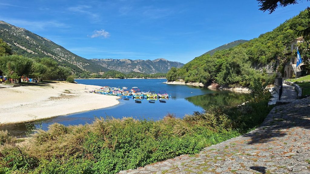 Schnell an Beneveto vorbei geht es entlang der SS212 und SS87 in Richtung Morcone. Wie gehabt sind die Straßen, die ausgesucht wurden, eher nicht für den Verkehr freigegeben, aber weiterhin ohne Probleme passierbar. Vorbei an einem etwas ausgetrocknetem weiteren See kommen uns viele Frühsportler entgegen. Auf den wenig befahrenen Wegen sind viele mit ihren Hunden oder eben zum Laufen unterwegs. Am Ende des Sees eine kurze Pause.