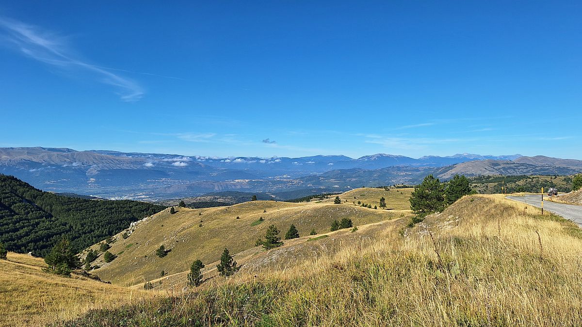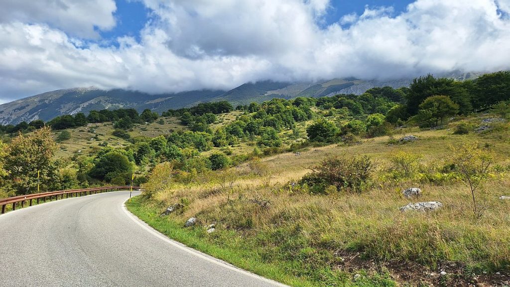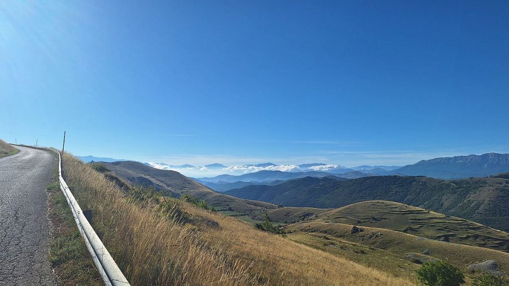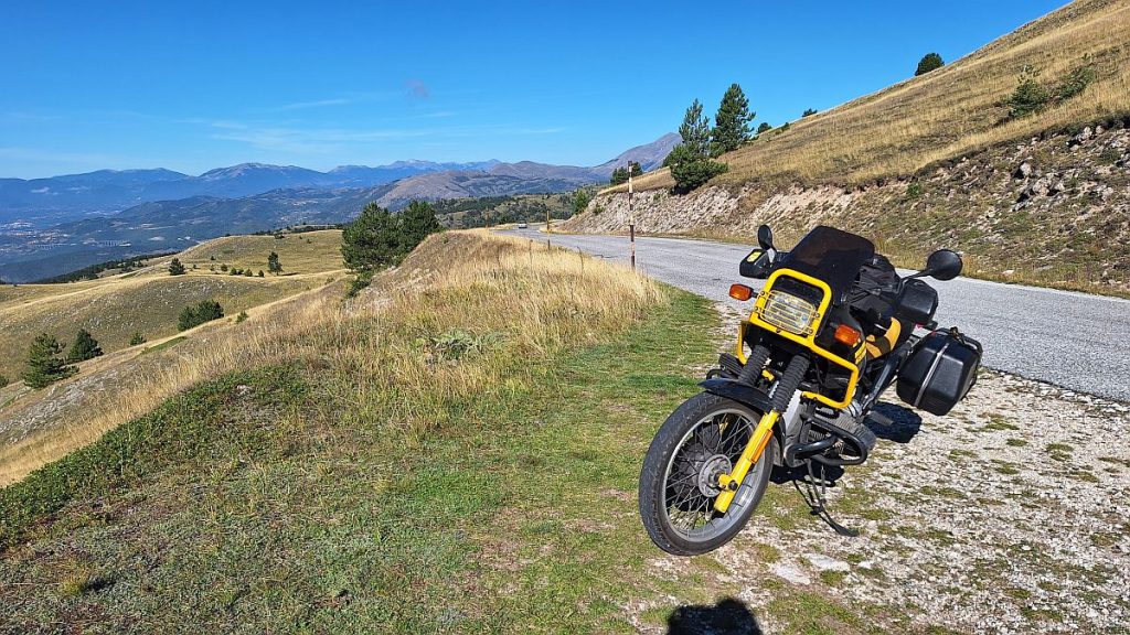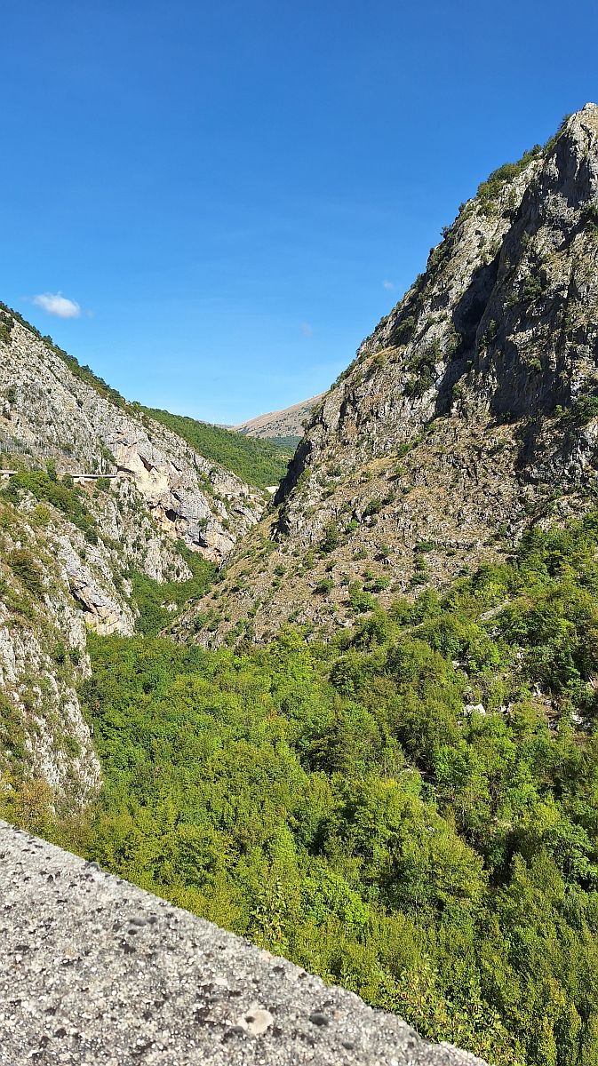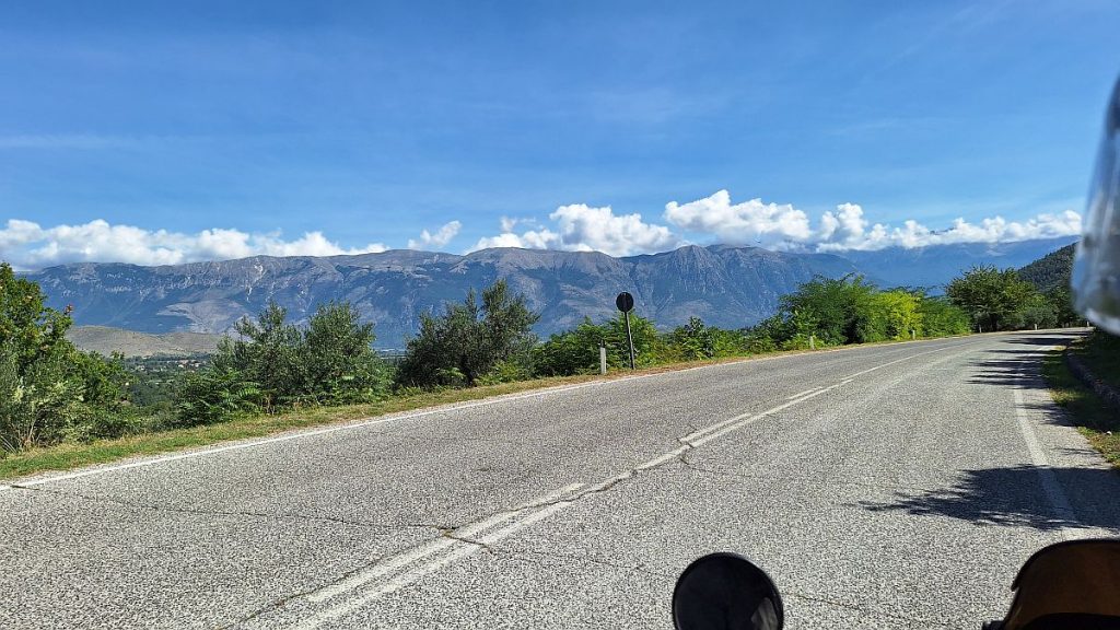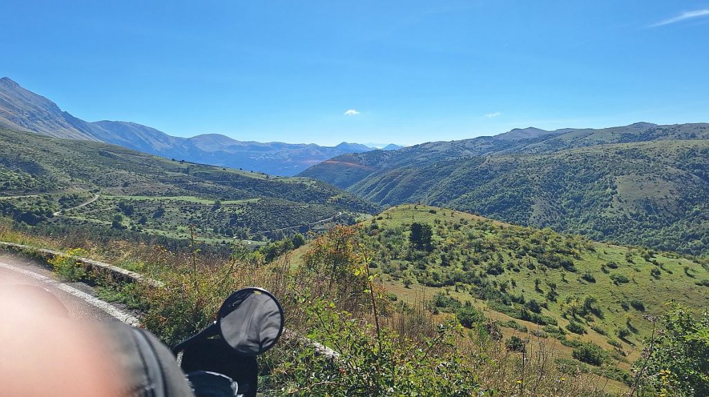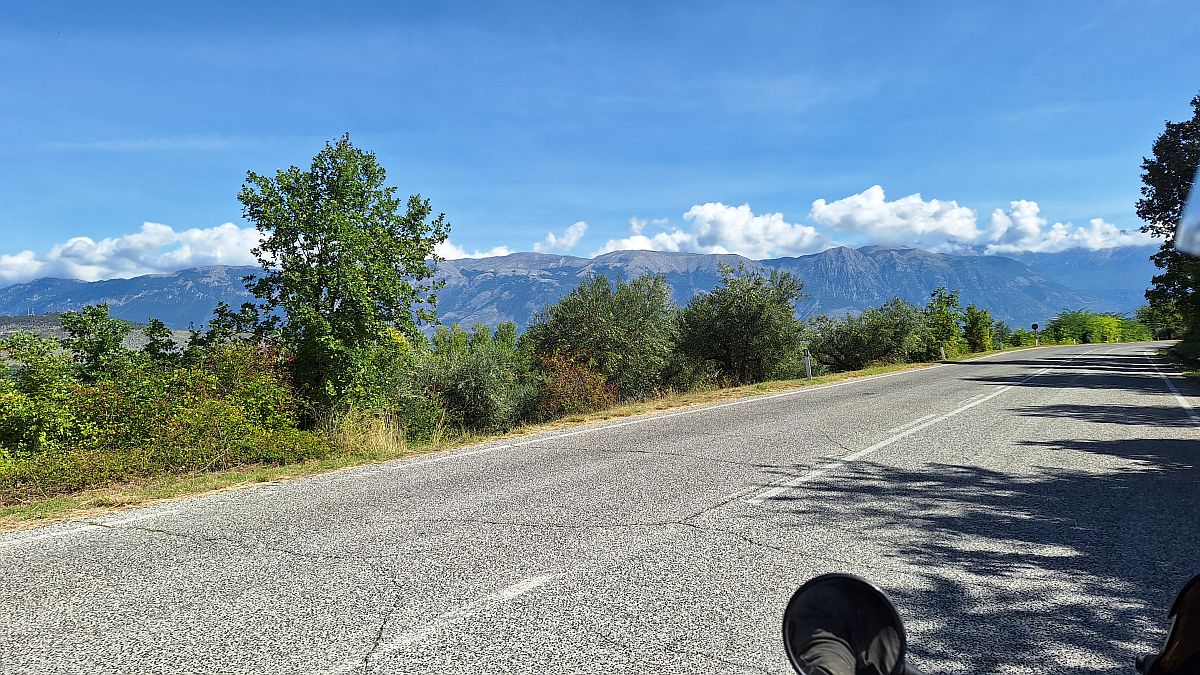 In Sulmona verlassen wir die SR479 und kommen auf die SS487, nicht ohne in der Stadt noch eine nicht beschilderte Umleitung mitzunehmen. Aber nach dem Stadtende entschädigt die Strecke wieder durch Serpentinen, blauem Himmel und einem wunderbaren Streckenverlauf.
