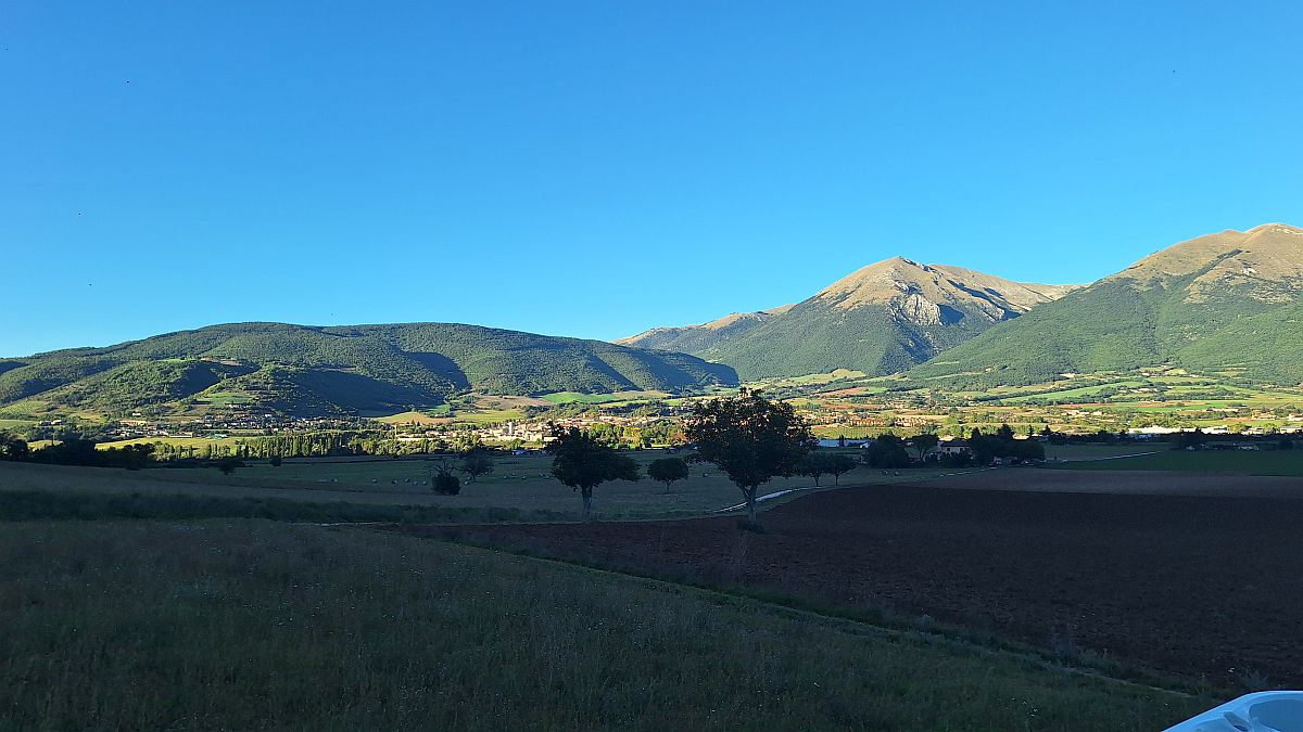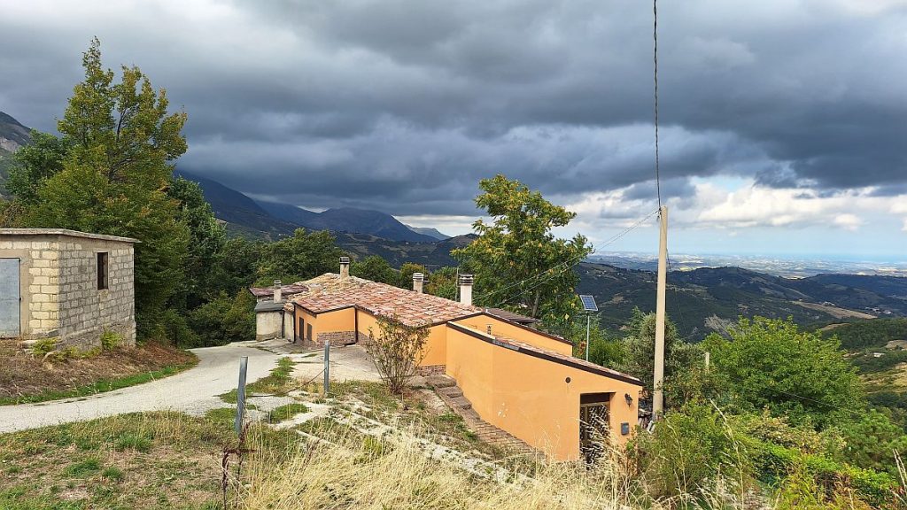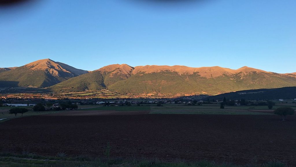 Aber etwas anderes ist uns erst am Abend bewusst geworden: Mittags sind wir u.a. durch Amatrice gefahren, dort wurden wir auf Umwegen durch die Stadt geschleust. Und viele Gebäude waren mit Gerüsten versehen. Eine kurze Suche im Netz gab uns dann die Bestätigung: Wir sind direkt durch das von 2016 sehr betroffene Erdbebengebiet gefahren, d.h. die Gerüste waren wohl zum Teil zur Sicherung der Häuser gegen einen Einsturz aufgestellt. Auch auf dem heutigen Hof steht hinten eine teilweise eingefallene Scheune. Und unser Haus, in dem wir heute Nacht schlafen, ist deutlich neueren Datums.