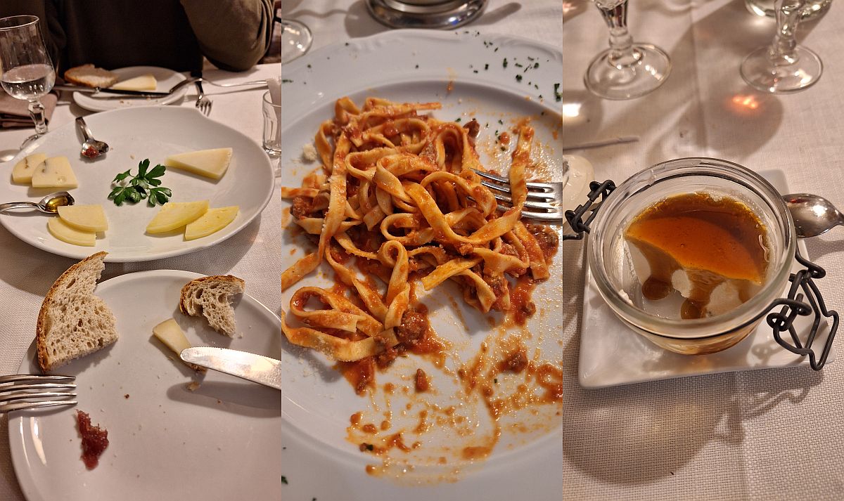 Später tauschen wir die Klamotten, das Abendessen wollen wir dann doch nicht im Leder einnehmen. Leider kommt diesmal nichts ungegessen vor die Linse.