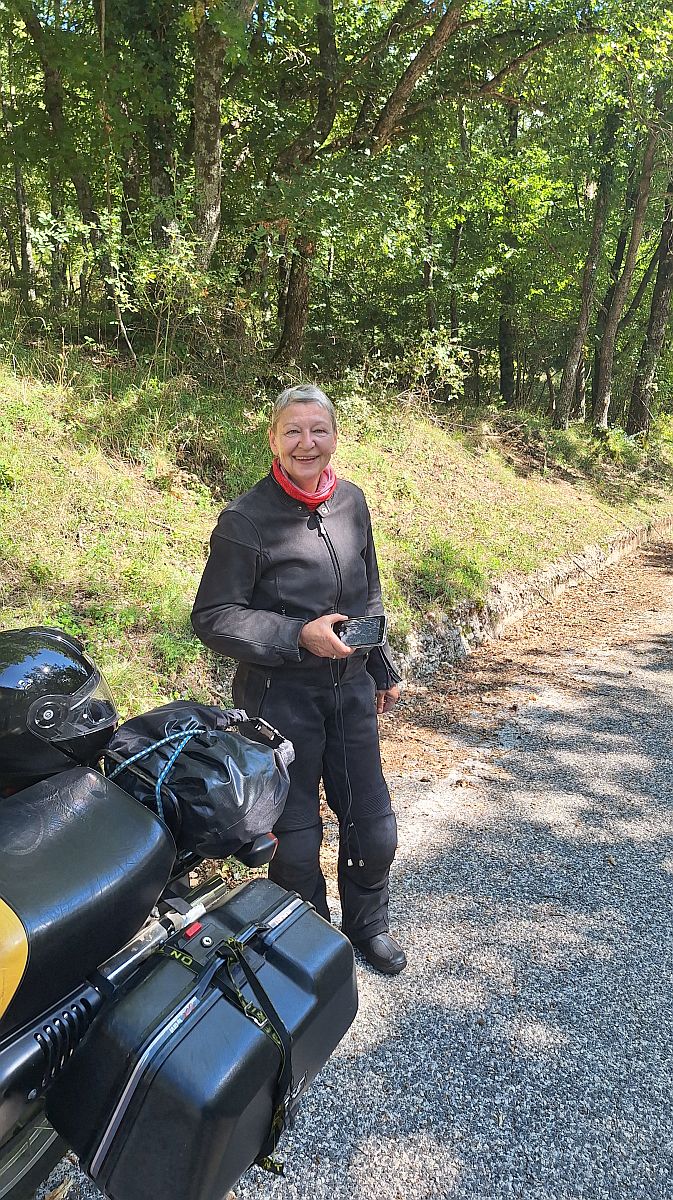 Wir biegen in die SP45a ein, ein kleiner Weg, der mit einer guten Steigung durch den Wald geht. Schnell können wir hier nicht fahren, aber die Strecke macht viel Spaß. Leider sind alle Ortschaften auf dem Weg nicht bewirtschaftet, d.h. wir müssen hungern.